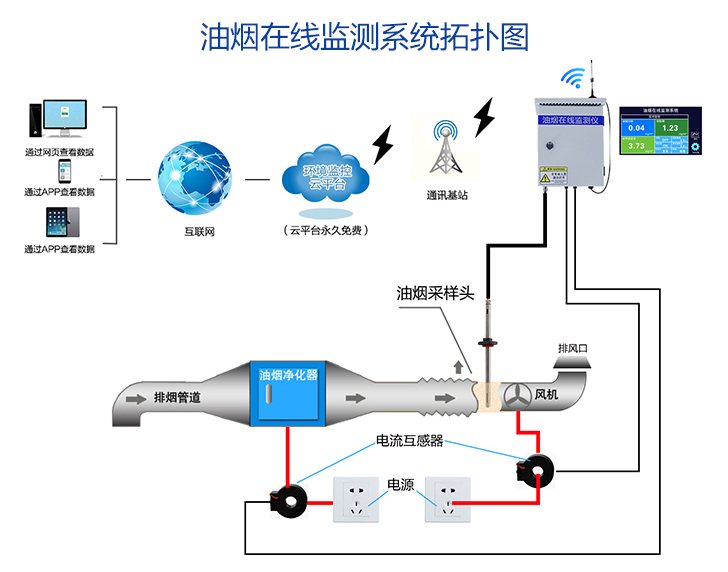 油煙污染監測同揚塵監測一樣,也有著一套完整的監測系統,叫做油煙在線監測系統,油煙監測系統是專門用來監測油煙排放管道內油煙濃度的一套系統。