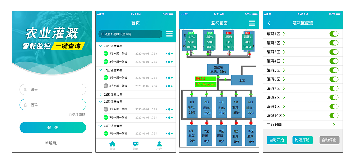智能水肥一體化系統:與傳統的灌溉方法相比,仁科水肥一體化智能灌溉系統采用傳感器、物聯網、云計算等多項技術,集灌溉和施肥于一體,由水肥一體機、土壤墑情采集終端(土壤溫度水分電導率三合一變送器、土壤氮磷鉀變送器、土壤PH變送器)、過濾系統、閥門控制器、電磁閥、田間管路、監控軟件云平臺組成,具有節水節肥、節省人力的特點。