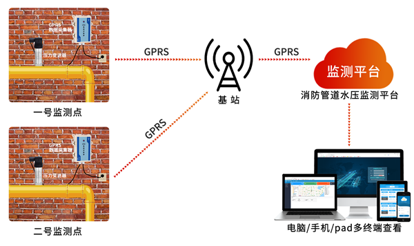 為有效解決這一消防隱患,建大仁科制定了消防管道水壓監測解決方案,有效監測消防管道水壓,及時消除消防安全隱患。