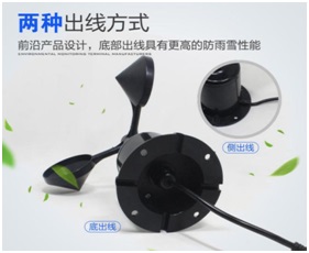 ?。?)風速風向傳感器采用前沿產(chǎn)品設計,有底出線和側出線兩種出線方式,底部出線有更高的防雨雪性能。